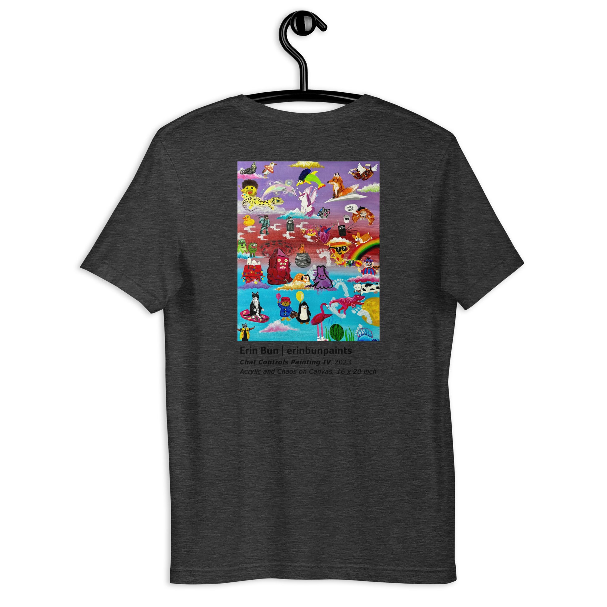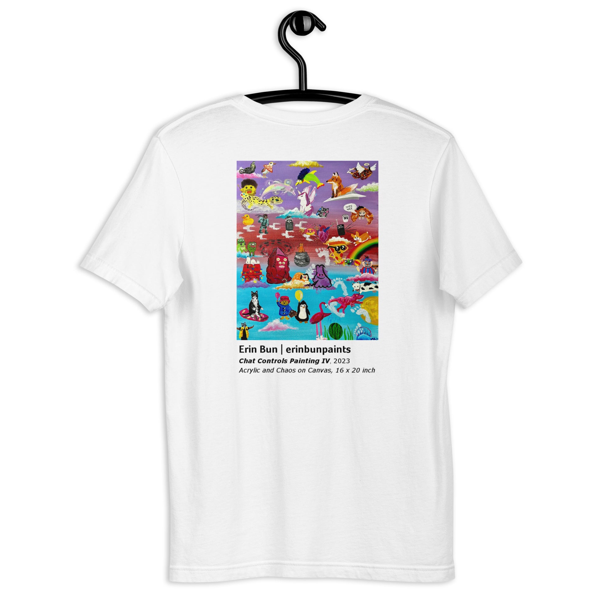 The final 'Chat Controls Painting' piece is featured on the back of this shirt, and it's... incredible. The text below the image reads: